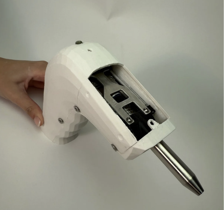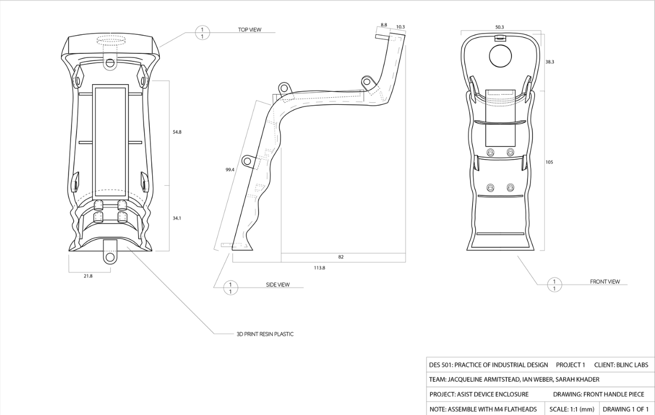 The ASIST device is a testing device for bone-anchored prosthesis. Through a series of rapid taps, the device administers a test to ensure the security and stability of bone implants. The casing for the ASIST device is optimized for a comfortable grip for both one- and two-handed holds. Integrated finger holds and a sloped top ensure a clear view of the testing area and easy test administration.